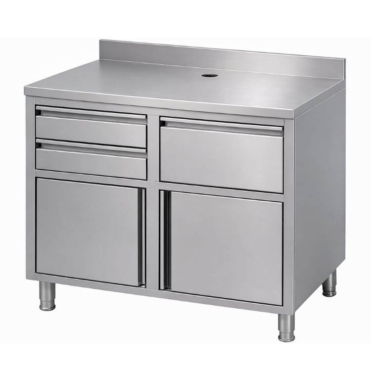 Aménagez un espace café ergonomique et hygiénique avec cette table de travail professionnelle en acier inoxydable. Pensée par la marque Combisteel, sa hauteur spécifique de 1150 mm soulage le dos de votre équipe lors des préparations répétitives. Avec sa profondeur de 600 mm, elle accueille facilement vos machines à expresso, moulins et accessoires. Disponible en 3 largeurs (1000, 1250 et 1500 mm), elle s’adapte millimètre par millimètre à votre bar.