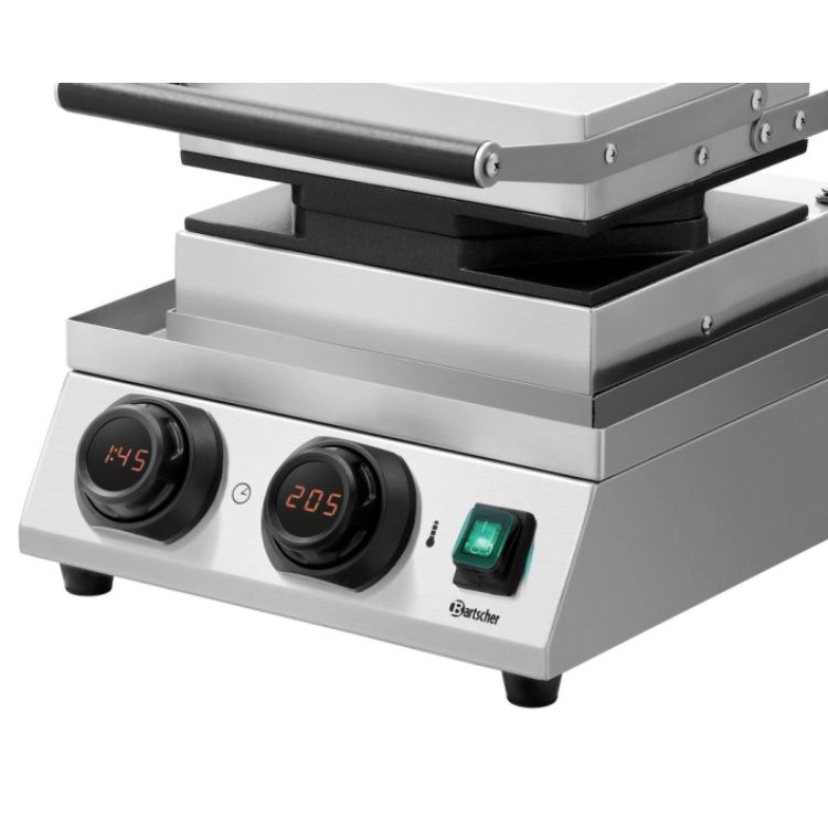 Sublimez votre carte avec le Gaufrier Bubble Bartscher. Cet appareil professionnel de 1,5 kW permet de réaliser des gaufres hexagonales alvéolées ultra-tendances. Compact et précis, il offre un contrôle numérique de la température (jusqu’à 300°C) et une minuterie intégrée pour des cuissons toujours parfaites. Sa structure en acier inoxydable et ses plaques en aluminium en font un allié durable et performant pour votre activité snacking.